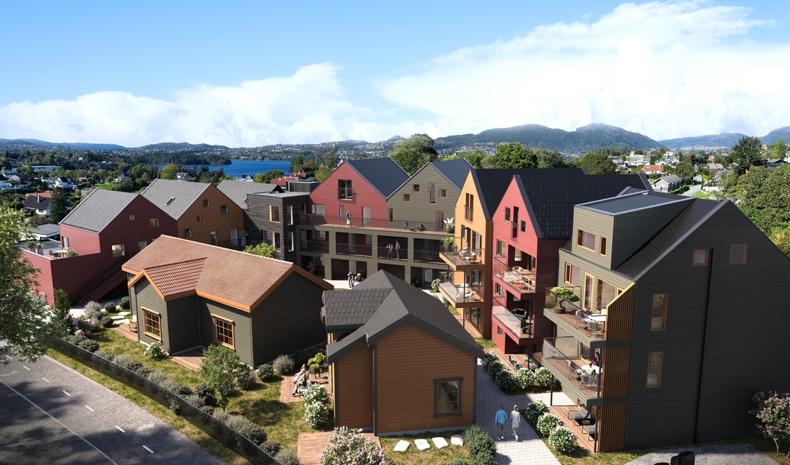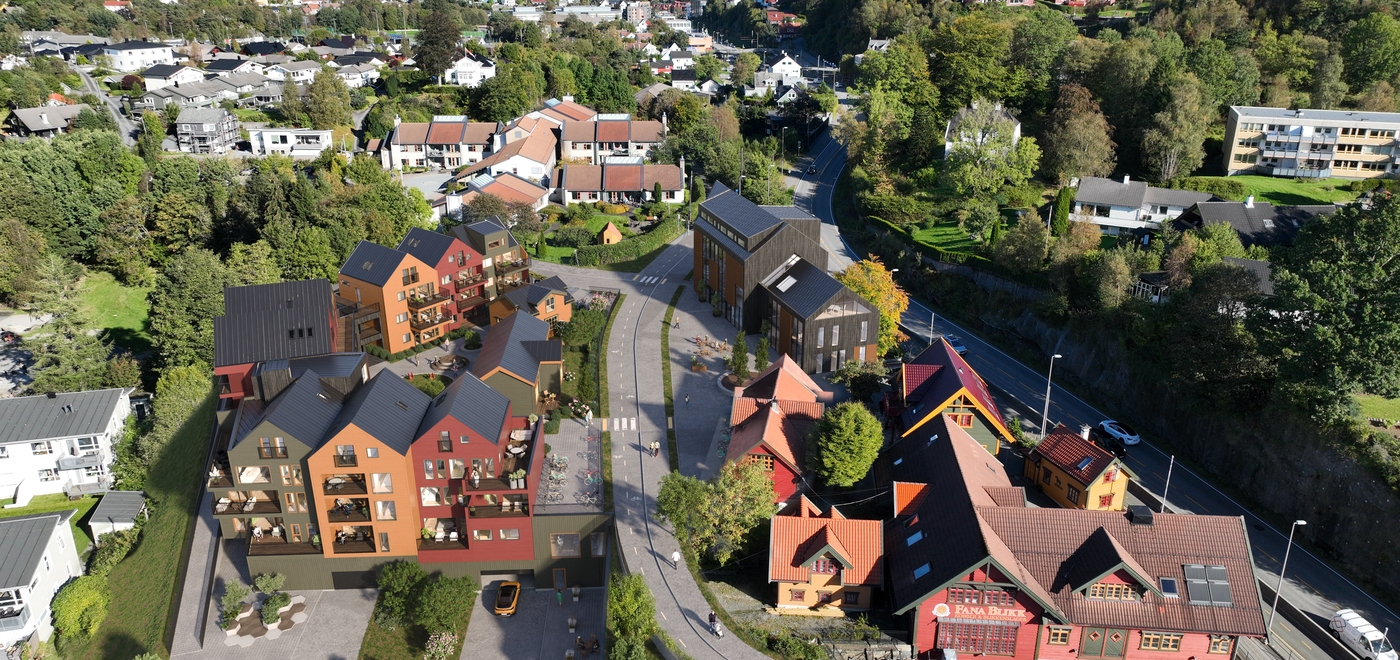 26 leiligheter rundt et hyggelig tun på tomten til Fana Blikk